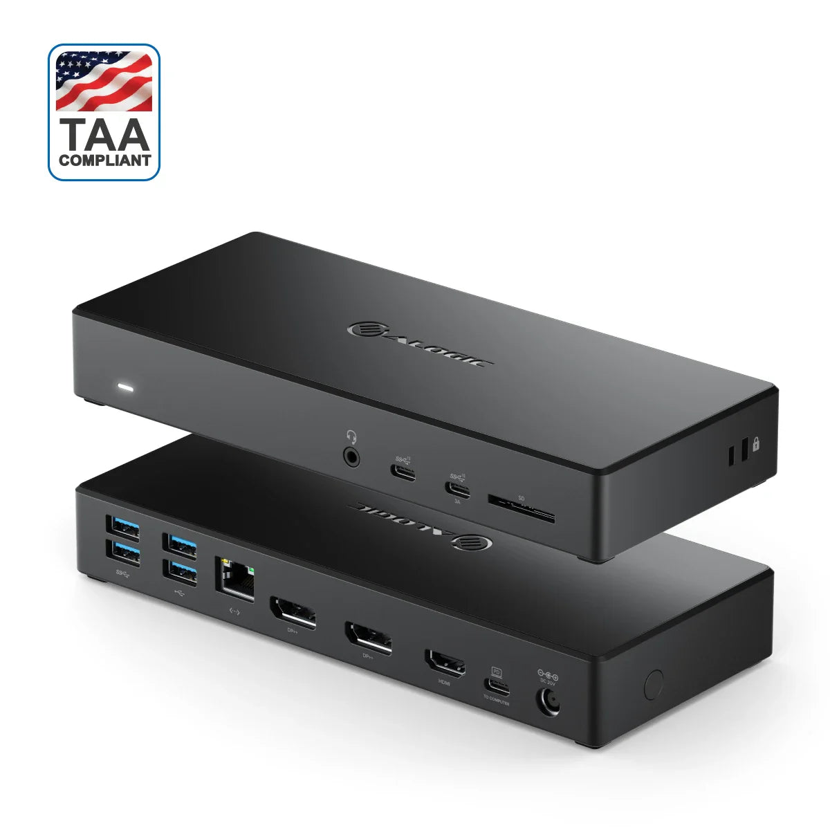The MA3 dock supports up to three displays at resolutions of up to 4K*. In addition to the ability to connect external monitors, the dock provides access to a full range of connections with USB 3.1 Gen 2/10G USB-C and USB 3.1 Gen 1 and USB 2.0 USB-A Ports, Gigabit Ethernet, 3.5mm Combo Jack and SD Card The dock also features lock slots for securing it to a desk when being used in an office or a hot desking environment. *Refer to the resolution support table for details on different resolutions supported with the dock.